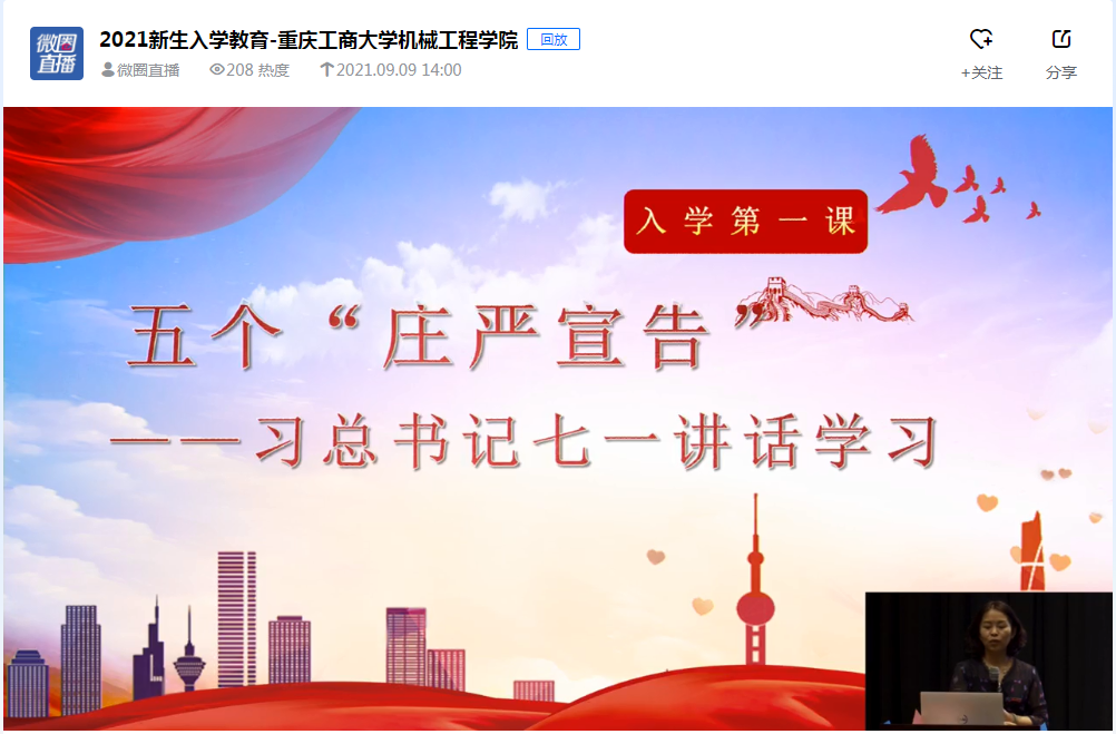 2021年9月以来,公司以线上线下相结合的方式,利用新生入学教育、党支部组织生活会、全院教职工政治学习、主题班会等形式,结合受众不同特点,有针对性的开展宣讲活动13场,受众累计1915人次。其中院领导开展宣讲3场,专职组织员开展宣讲1场,各党支部书记开展宣讲5场,专职辅导员开展宣讲4场,覆盖全院教职工和各年级专业员工。