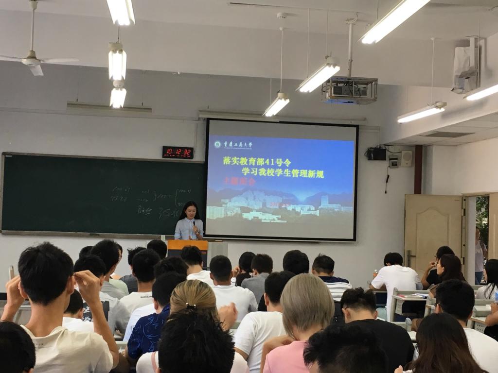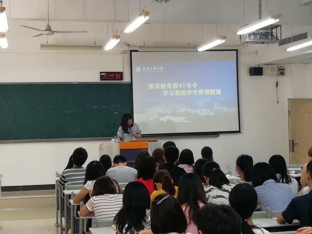 班会上,各辅导员老师以公司发布的2017版员工手册为主要内容,向同学们详细介绍了新版员工手册的各章内容以及与2016版员工手册的修改部分,组织同学们展开讨论,并为同学们答疑解惑,收到了良好的效果。