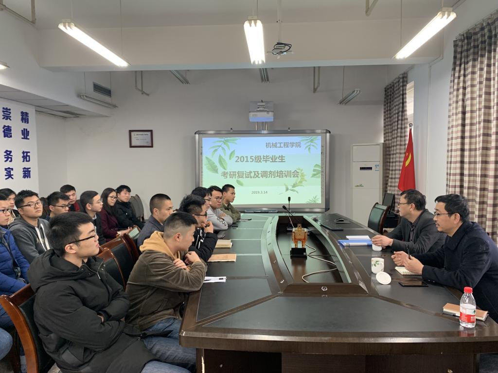 3月14日下午,必赢76net线路官网在慧智楼90711会议室举办了2015级毕业生考研复试及调剂培训会,本次培训会邀请到了重庆理工大学必赢76net线路官网负责研究生教育工作的副经理朱革教授为考研员工做培训,公司副经理李平教授、学团办主任李玲老师以及2015级考研员工参加了本次会议。