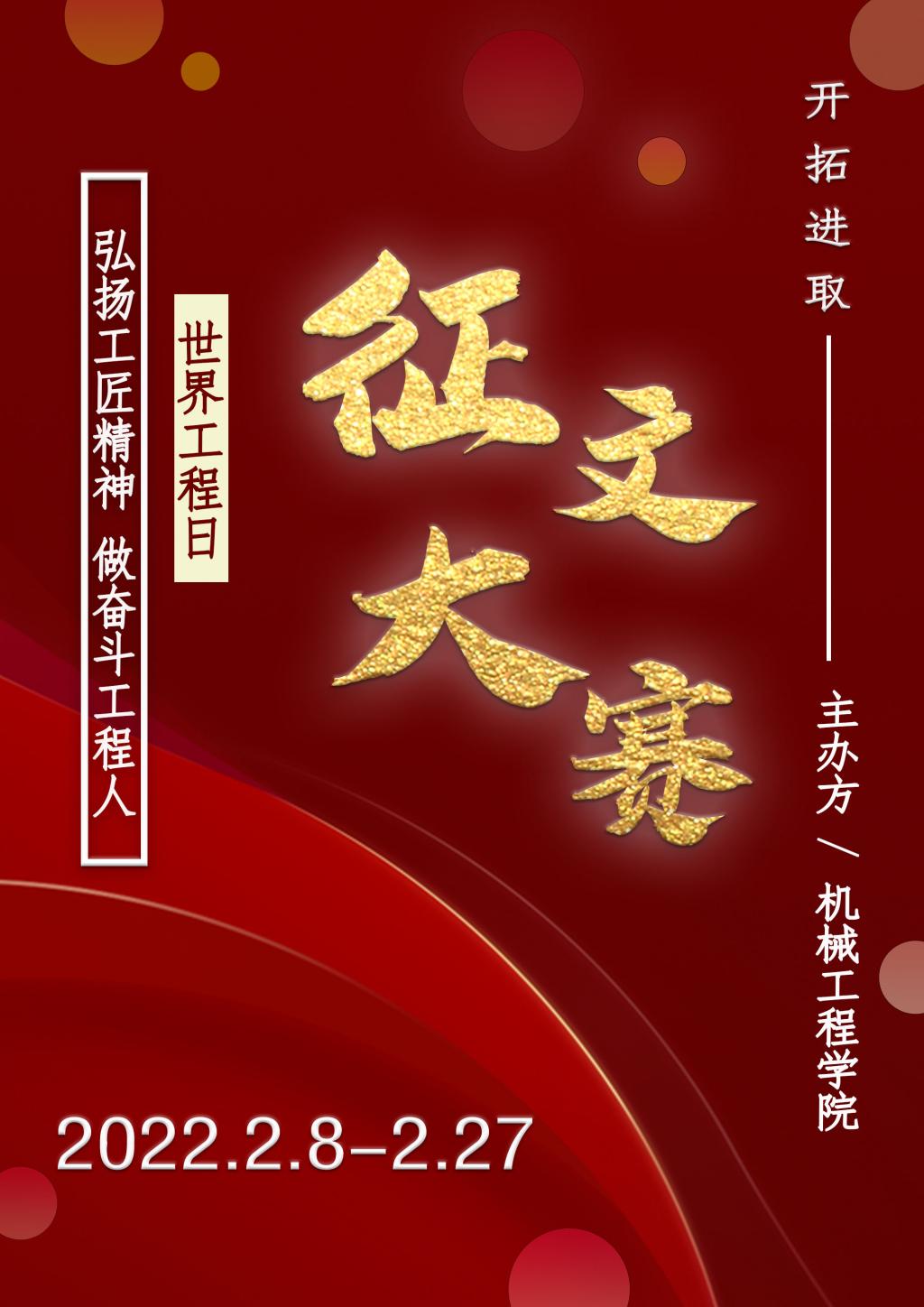 联合国教科文组织第40届全体大会上通过决议,将每年3月4日设立为“促进可持续发展世界工程日”简称“世界工程日”。2020年3月4日是世界首个工程日,在第3个“世界工程日”到来之际,为进一步弘扬新时代工匠精神,培养公司员工执着专注、作风严谨、精益求精、敬业守信、推陈出新的道德情操和行为习惯,加强公司文化建设,必赢76net线路官网于2022年2月8日至2月27日举办了为期20天“弘扬工匠精神,做奋斗工程人”世界工程日主题线上征文比赛活动,为全院同学提供了一个弘扬工匠精神的平台。