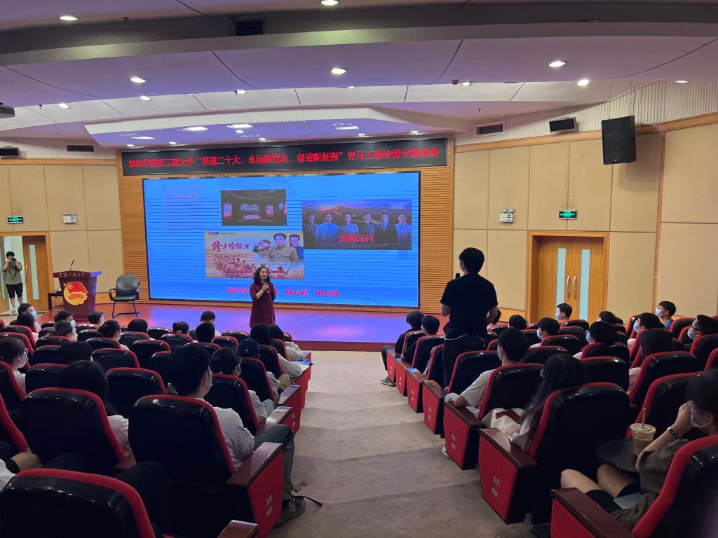 为迎接党的二十大胜利召开,引导广大青年团员深入学习贯彻习近平新时代中国特色社会主义思想,培养信仰坚定、能力突出、素质优秀、作风过硬的团学骨干,4月22日下午,校团委在博智楼7200报告厅启动“喜迎二十大、永远跟党走、奋进新征程”青马工程培训。共青团重庆市委副书记黄永宜作了题为《深学笃用习近平总书记关于青年工作的重要思想做有志气、有骨气、有底气的新时代青年》的专题讲授。必赢76net线路官网19级包装一支部全体团员参与活动。