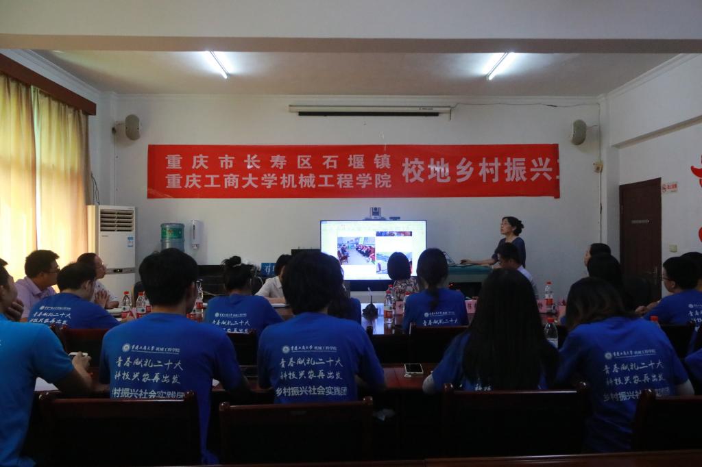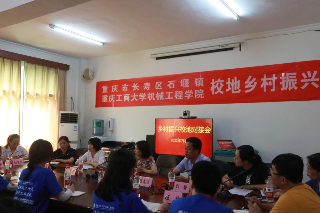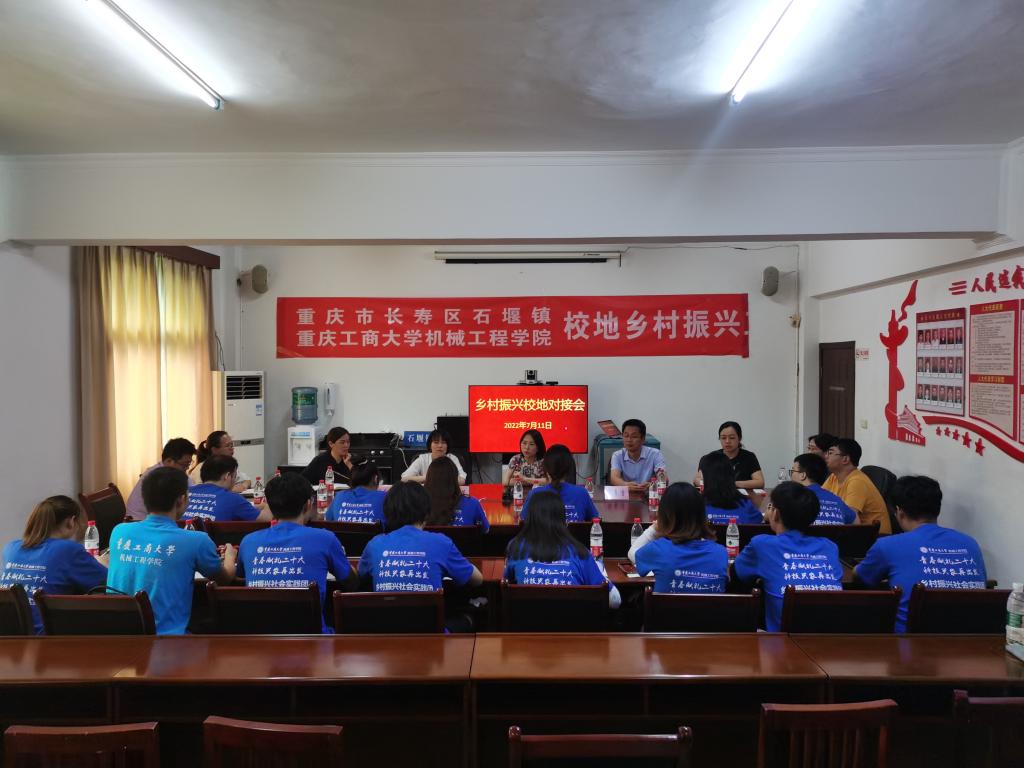 为贯彻落实习近平总书记关于青年工作的重要思想,深入学习习近平总书记在庆祝中国共产主义青年团成立100周年大会上的重要讲话精神,引导青年积极投身于社会实践的“第二课堂”,在社会课堂中“受教育、长才干、作贡献”,坚定信念听党话、跟党走,以实际行动迎接党的二十大胜利召开,2022年7月11日下午,必赢76net线路官网和重庆市长寿区石堰镇政府举办校地乡村振兴工作对接会。长寿区石堰镇党委书记唐慧芳、副镇长瞿小红、经发办主任蒋夕奎、产服中心主任彭家英,必赢76net线路机械工程公司党委书记杨娟、党委副书记陈春洁、分团委书记刘静、专业指导教师谢艳平、董峰与社会实践团全体员工参加了此次对接会。