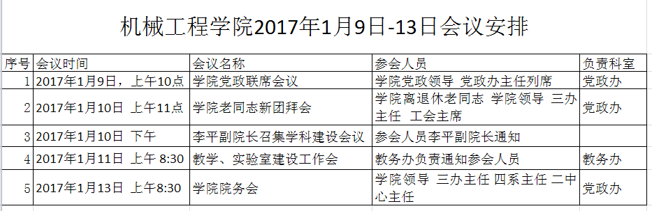 2017年1月9日-13日会议安排