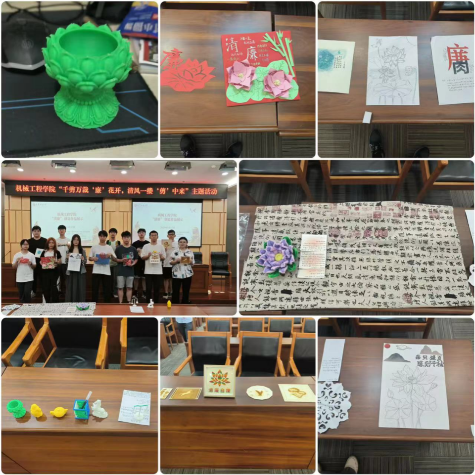 5月中旬,公司面向全校师生征集以“廉洁”主题的创意文化作品。同学们广泛参与,积极提交作品:有的利用3D打印技术制作栩栩如生的雕塑,生动展现廉洁勤政的精神;有的运用激光刻蚀技术,在木板上镌刻廉洁廉政箴言,展示对廉洁的认同和坚守;有的通过书法、手抄报等形式,传递对廉洁精神的热爱和追求。通过本次廉洁主题活动充分展示了同学们对廉洁文化的深刻思考,在同学们动手动脑的过程中真正地将廉洁文化入脑入心。
