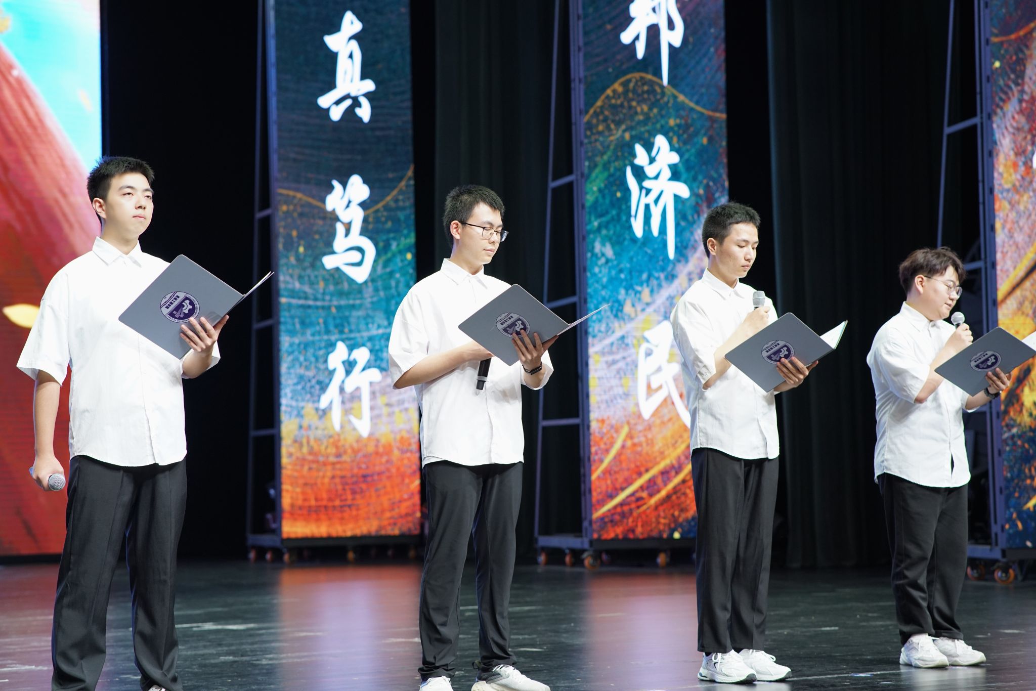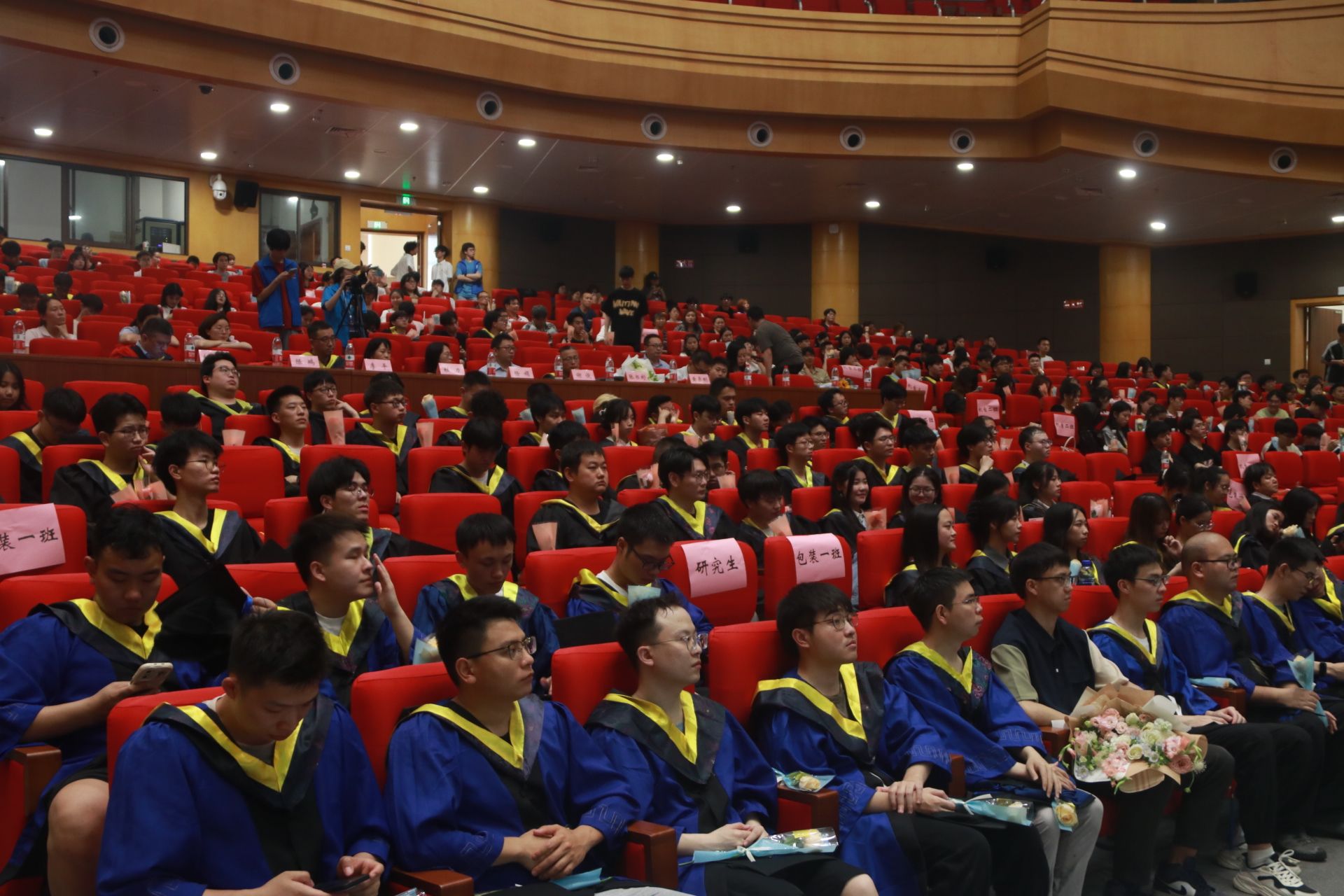 在颁发毕业纪念徽章和毕业生代表传递院旗的环节,现场气氛达到了高潮。每一位毕业生都接过了属于自己的纪念徽章,这不仅仅是一枚徽章,更是母校对他们四年努力的肯定和祝福。同时,毕业生代表们手捧院旗,传递着责任和使命,象征着他们将继续为母校争光添彩。