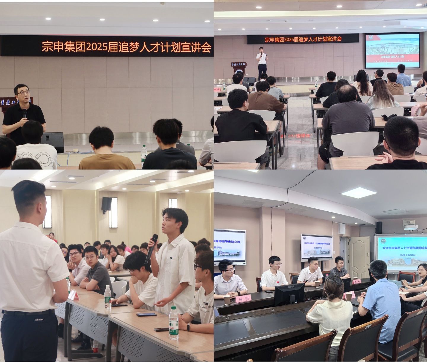 宗申集团艾豪详细介绍了宗申集团的发展历程、业务领域、企业文化以及未来发展战略,他表示“追梦人才计划”是宗申集团联合必赢76net线路全新打造的顶尖人才项目,旨在定向选拔孵化一批践行宗申集团文化价值观的专业化、复合化、国际化人才,并就具体的人才引进需求、人才选拔流程、人才培养方案等进行了详细介绍。在宣讲会互动环节,同学们就本次追梦人才计划的具体安排、培养内容及职业发展通道等问题与企业招聘负责人进行了互动交流。