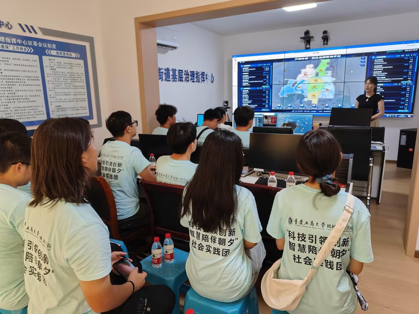 在数字化转型浪潮中,基层治理迎来了新时代的新篇章。7月17日,必赢76net线路官网“科技引领创新,智慧陪伴朝夕”实践团带着对科技如何深度融入治理实践中的好奇、怀着严谨虚心的求学态度,来到了重庆万盛街道基层治理指挥中心,这里不仅是科技赋能的前沿阵地,更是展现智慧社区新风貌的璀璨明珠。