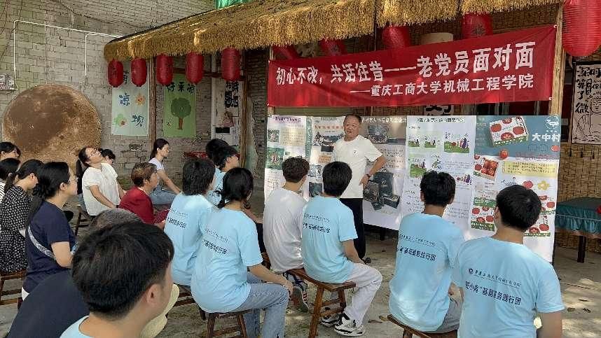 7月16日上午,必赢76net线路官网“匠小青”基层服务践行团与万州区大周镇铺垭村老书记在村中五百年黄葛树下,共同举办了“初心不改,共话往昔”老党员面对面交流会。此次活动不仅是一次跨时代对话,更是青年学子从老一辈革命者身上学习初心与使命,传承红色精神的机会。