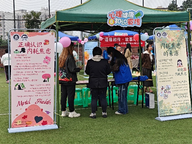 此次活动,公司组织协办了四个展位,在“心理健康知识宣传”展区,引导大家正确认识“焦虑内耗”,分析了其来源并向大家分享了缓解路径;在“生命方舟·航向明天—生命之船”展区,通过游戏引导同学们了解生命建构的意义,形成积极的自我认知,通过模拟紧急情境,探讨生命价值、伦理道德和团队合作。在“麻布袋DIY”展区,同学们构想一个能够反映自己心理状态的图案,并将其绘制在麻布袋上,引导大家充分发挥创造能力、动手能力,实现主观情感到审美作品上的转移;在“自我认识—心理测试”展区,同学们通过抽取“幸运箱”中的小球,进行自我认知测试,从而加深同学们对自己的认知和了解。