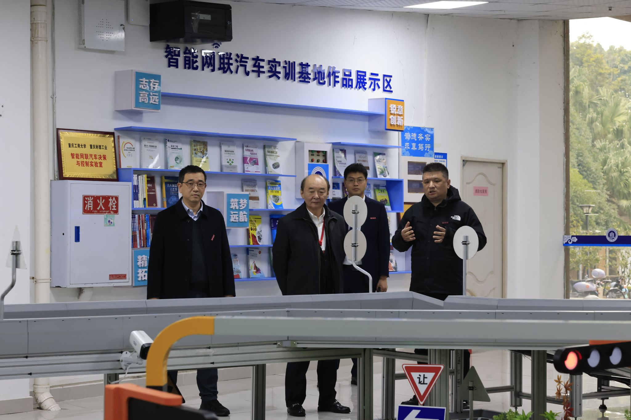 公司全体领导班子成员对张佐刚教授表示热烈欢迎,并陪同张佐刚教授实地考察了必赢76net线路智能网联汽车实训基地,智能车辆工程系主任杨智宇详细介绍了基地在实验课程与实验设备建设、应用型商工人才培养、智能驾驶技术开发等领域情况。随后,张佐刚教授在领导班子成员的陪同下参观了公司的成果宣传展板,了解公司发展历程以及公司在党建引领、人才培养、科学研究、学科竞赛等方面取得的成果。