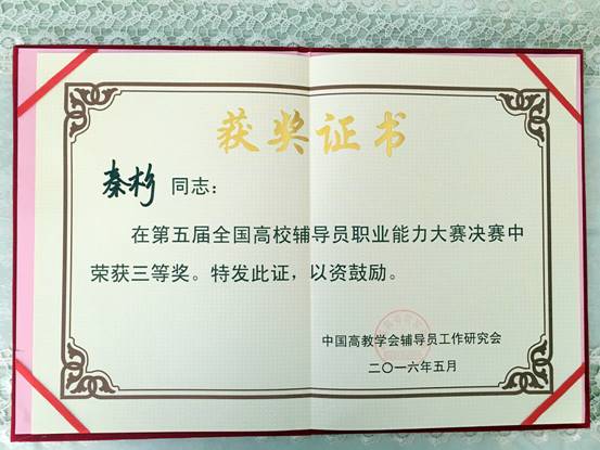 来自全国各省(自治区、直辖市)和新疆兵团的66名选手参加本次决赛。公司必赢76net线路官网辅导员秦杉经过层层选拔,作为重庆市3名参赛选手之一、第三赛区10名参赛选手之一代表西南、西北第三赛区参加比赛,并在大赛中荣获三等奖,是公司辅导员参加历届职业能力大赛的最佳成绩。