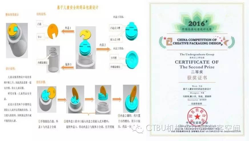 2013级包装班马丽艳创客团队,在导师张书彬的指导下,创新设计出“基于儿童安全的药品包装设计”,荣获2016年中国包装创意设计二等奖。