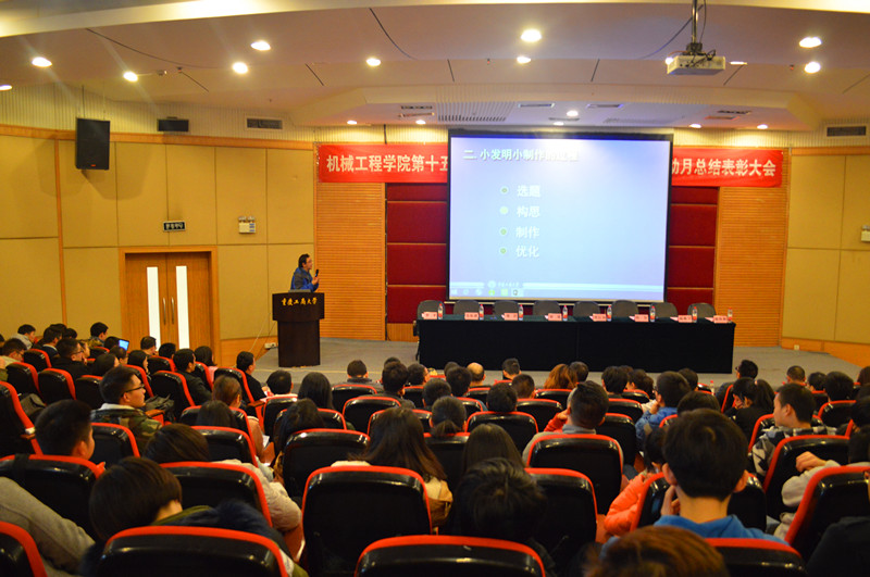 随后,各项赛事指导老师分别介绍了科技作品小发明小创作比赛、包装设计大赛、机器人组装设计大赛、工程制图大赛、科技论文大赛、汽车评估师大赛、3D打印大赛七项赛事的比赛情况。机械师团队代表黄凯作为公司的科技创新积极分子,以自身参加科技活动的经历,引导学弟学妹积极参加科技竞赛。迄今为止,他所在的机械师团队总计获得国家级奖项23项,省级奖项28项,奖金累计超过18万元。