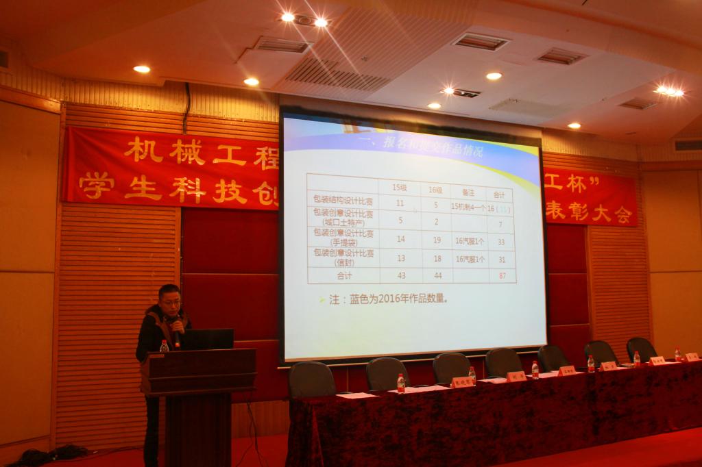 员工科技创新文化活动月活动作为公司的品牌活动之一,一直以来都作为公司引导员工熟悉、热爱本专业的桥梁和纽带。本届员工科技创新文化活动月依然历时一个多月,包括科技作品小发明小创作比赛、包装结构设计大赛、包装创意设计大赛、机器人大赛、工程制图大赛、科技论文大赛、汽车发动机拆装大赛、汽车评估师大赛、3D打印大赛,共有 267个团队,1067人次参加,参与率达71%。首先,公司经理杜力教授发言,她对整个活动情况进行了点评,并以年级为单位对每一个班级的参赛率进行了分析和总结,鼓励同学们更加不畏困难、勇于创新和探索,希望更多的同学参与各类科技活动,通过科技活动和竞赛来提高专业素质和综合能力。之后,4位系主任作为指导老师代表分别对比赛情况、评分规则及优秀作品进行了详细的介绍,对参赛同学们取得的成绩给予了充分的肯定和鼓励,指出了存在的问题与不足,给出了建设性的意见和建议,并进一步动员更多地同学参与到科技活动中来。随后,激动人心的颁奖仪式正式开始。获奖代表依次上台领奖后,参赛员工代表王昊进行发言,以参加学科竞赛给自己带来的益处出发鼓励同学们积极投身学科竞赛。