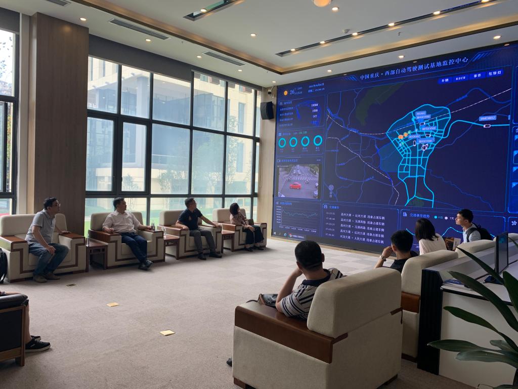 必赢76net线路官网一行人在百度智行信息科技(重庆)有限公司代表秦绪锋的带领下参观了百度Apollo西部自动驾驶开放测试与示范运营基地和自动驾驶测试基地监控中心,体验了自动驾驶车辆乘坐,大致了解了百度智行目前的科技研发主要内容和形式。