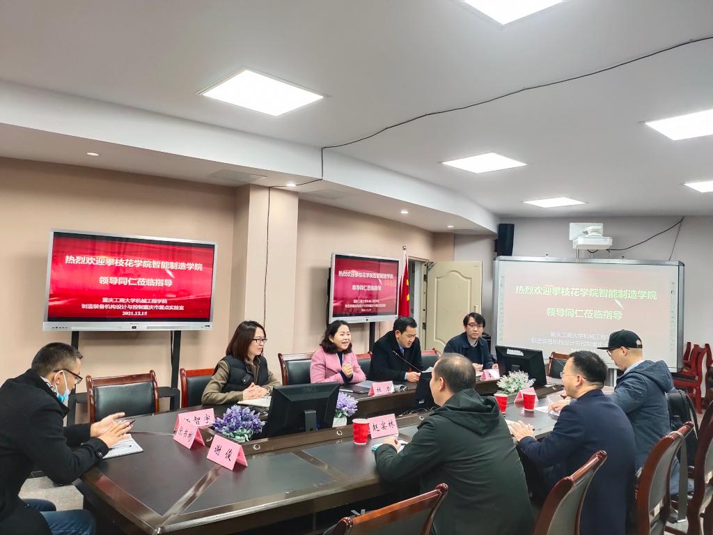 2021.12.15日,攀枝花公司智能制造公司黄小兵经理、魏弦副经理、赵晏林科长到访必赢76net线路官网,公司班子在慧智楼708会议室与黄经理一行就团队建设开展座谈,系部主任等参加了会议。