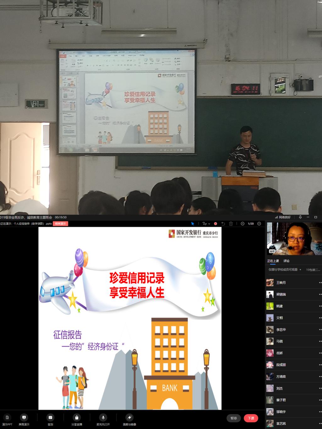 最后,党委副书记陈春洁做总结发言,他提到树道德之新风,立诚信之根本,俨然已成为在座每一个人义不容辞的责任。青年人应该承担自己的责任,有所作为,祖国寄希望于青年,寄温暖于青年,扶贫助学,健全资助体系,圆每一个孩子大学梦,生在华夏,何其有幸。他强调,大家在享受国家的资助圆梦的同时更要注重诚信还贷的重要性,做到诚信还贷,打造一个诚信校园;同时,临近考试周、放假期和毕业季,我们每一个人安全问题更是不能忽视,离校期间要保护自身生命安全。增强安全意识,营造和谐校园氛围。