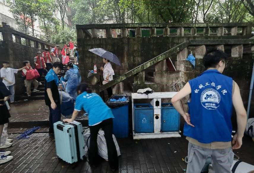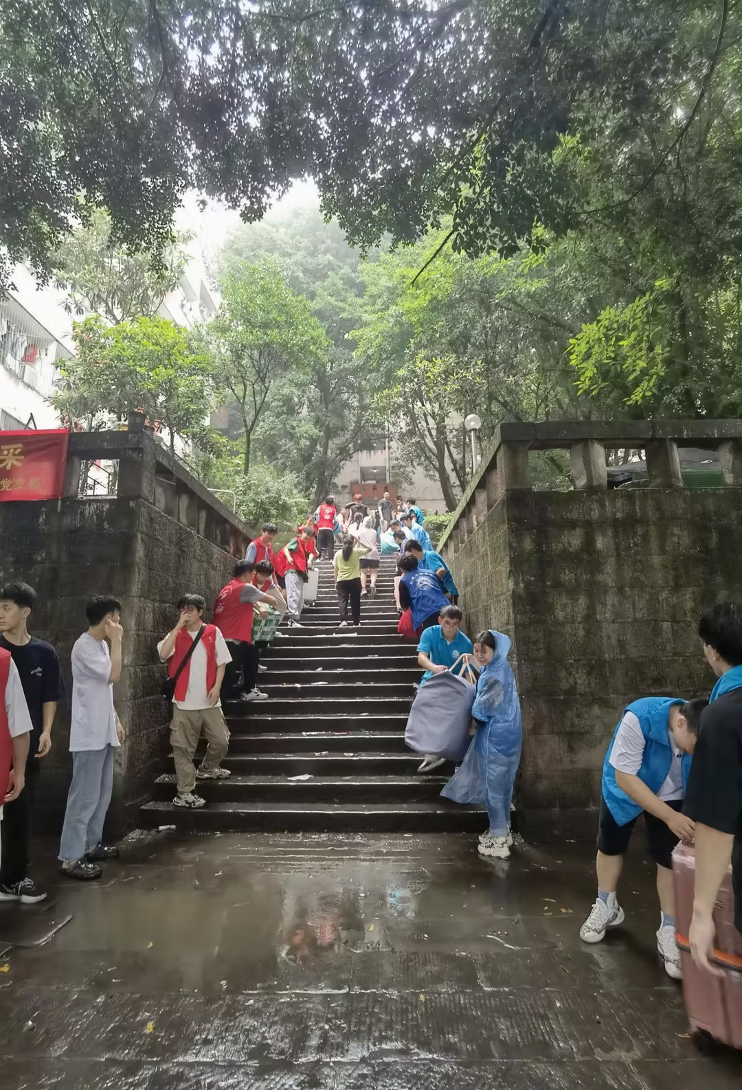 从清晨6:00开始,兰花湖员工们相互搭手、互相帮助,收拾行李。男生们自觉担当,帮助女生们搬运行李装车,他们遵循“行李先装车,同学后上车”的原则,有条不紊地默契配合着,高效地完成了装车任务。主校区,志愿者们早早地集合,简单食用了早餐,便匆匆赶往预定地点投入到忙碌的工作中。志愿者们分工协作,有的迅速组成人墙传送行李、有的帮忙翻找行李、有的引导员工找宿舍...搬运工作结束后,几乎每一位志愿者都被汗水和雨水浸湿,但他们没有一丝抱怨,始终洋溢着微笑,展现了我们必赢76net线路官网学子勇于担当的精神面貌。